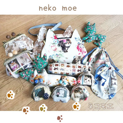🐈️猫柄布雑貨:首輪、猫キッカー、がま口、バックなど